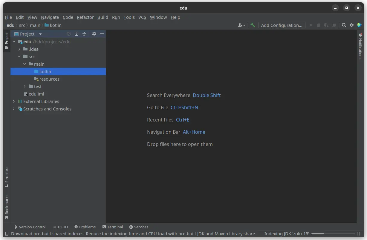Весь ваш котлін код має знаходитись в теці «src/main/kotlin».